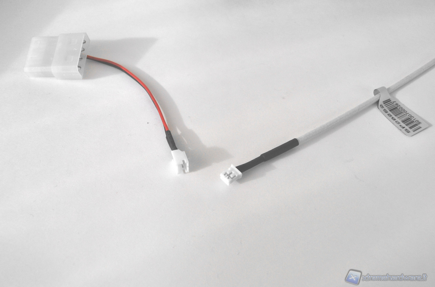 Il connettore è a 2 pin e può essere applicato direttamente alla scheda video (generalmente AMD), oppure collegato tramite adattatore Molex 4 pin, fornito in dotazione.