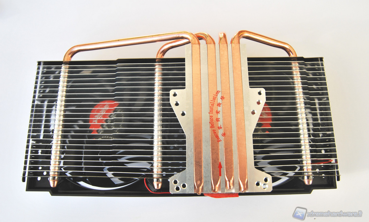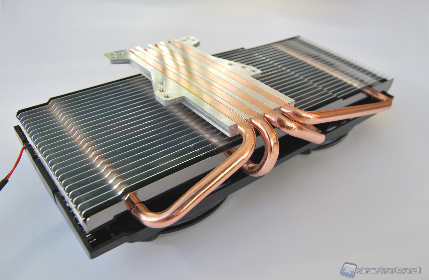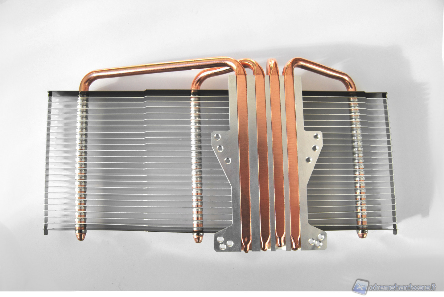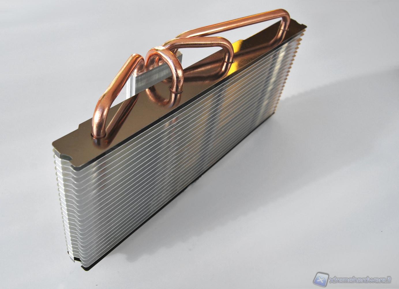 Le 4 heat-pipe in rame da 6mm di diametro convogliano il calore al corpo di alette in alluminio, caratterizzate da una superficie liscia.