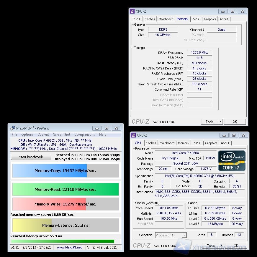 Per quanto riguarda la frequenza massima della memoria RAM, il limite di 2400 MHz riscontrato dimostra che neanche dal lato IMC risulti un processore fortunato. I processori Haswell hanno dimostrato di avere un controller di memoria integrato decisamente migliore in overclock, supportando ufficialmente, tra l'altro, memorie fino a 1600 MHz invece dei 1866 MHz della famiglia Ivy Bridge-E.