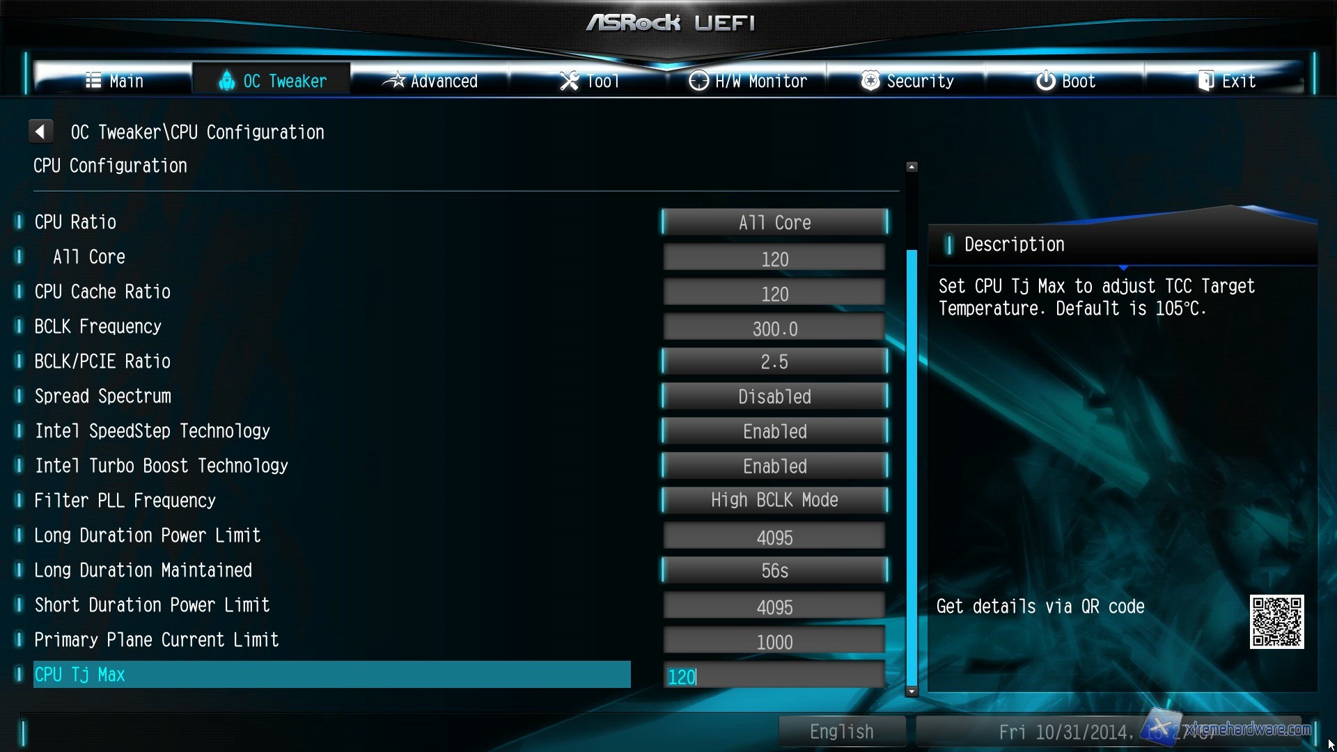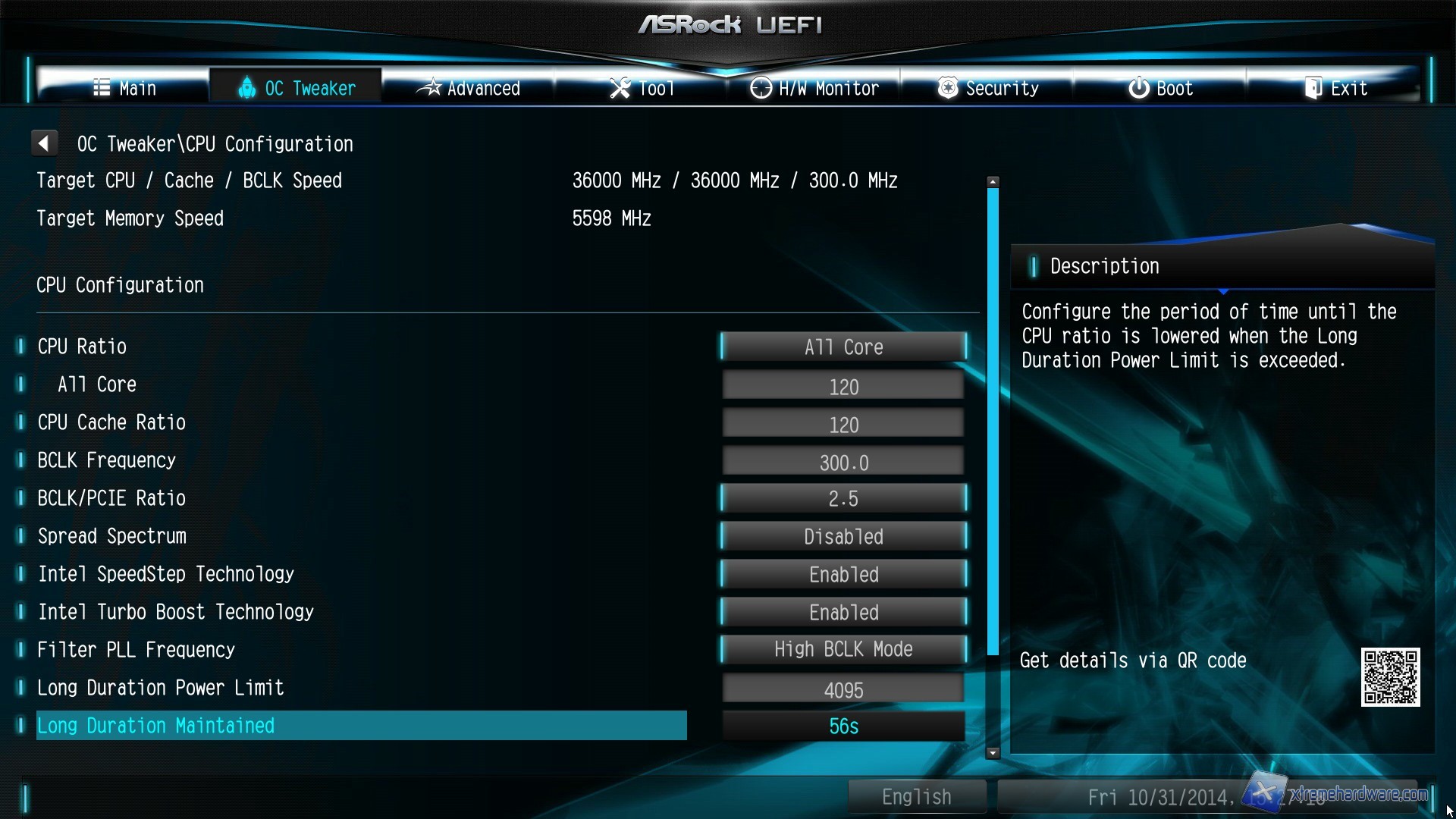 Nella sottosezione CPU Configuration vi mostriamo i valori massimi che è possibile impostare con la X99 Extreme6 e che sono di molto al di sopra dei limiti raggiungibili ed utilizzabili con qualunque hardware compatibile con questa scheda madre. Come vediamo con uno Strap di 300 ed un moltiplicatore (Ratio) di 120 il sistema imposterebbe una frequenza di processore di 36000 Mhz. Siamo nel futuribile…