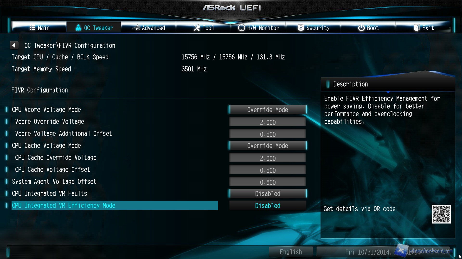 Le sotto-voci relative alla sezione FIVR Configuration non mancano di settaggi ugualmente importanti necessari per agire sui voltaggi richiesti dalle varie sezioni del processore per reggere una determinata frequenza. Ricordiamo che Haswell-E ha dei VRM integrati, quindi potremo agire anche sulla tensione di alimentazione di questi ultimi.