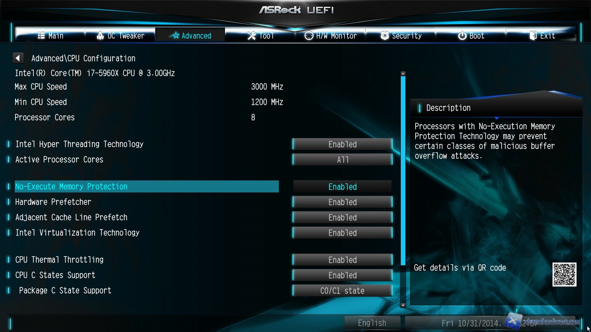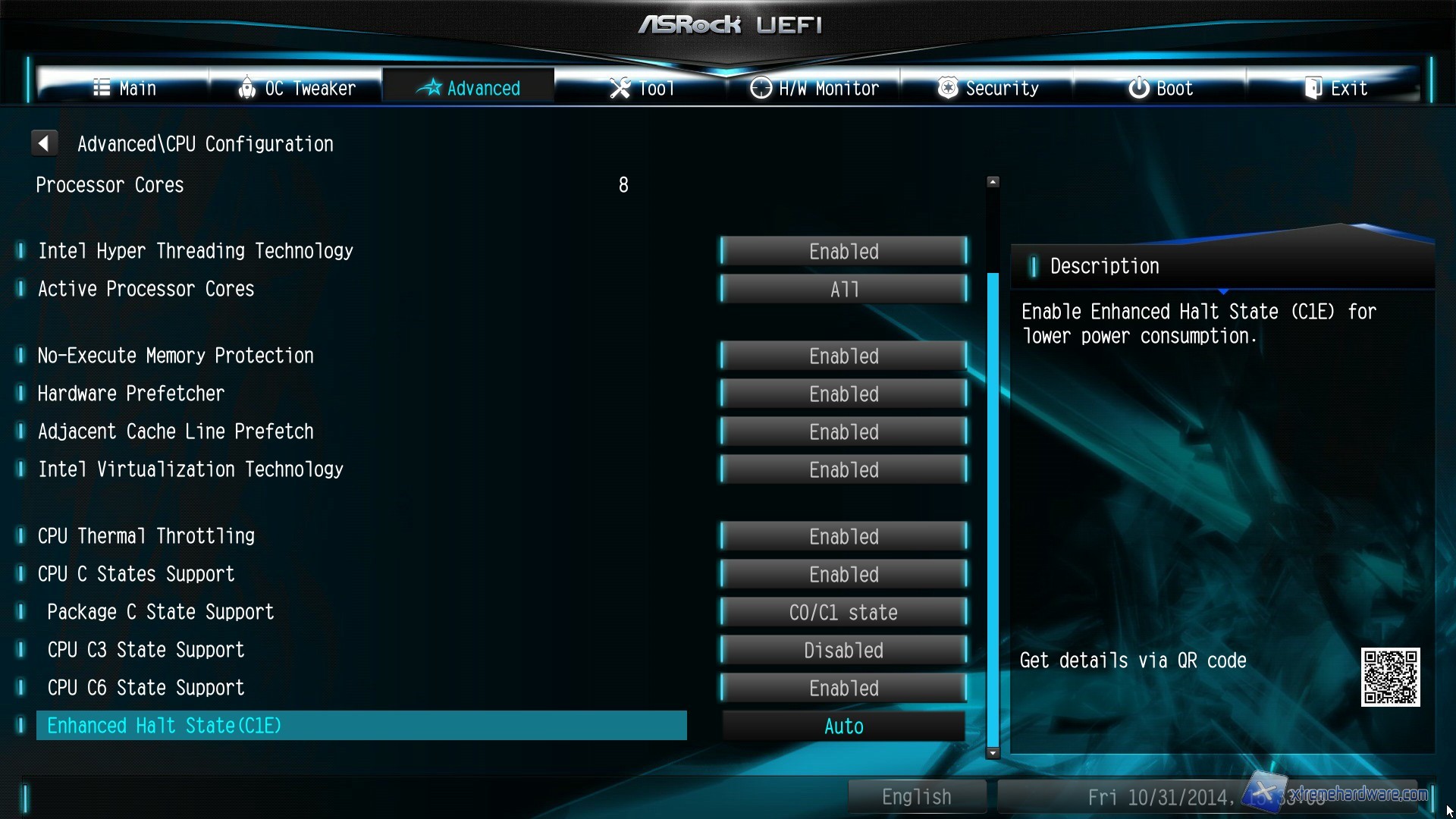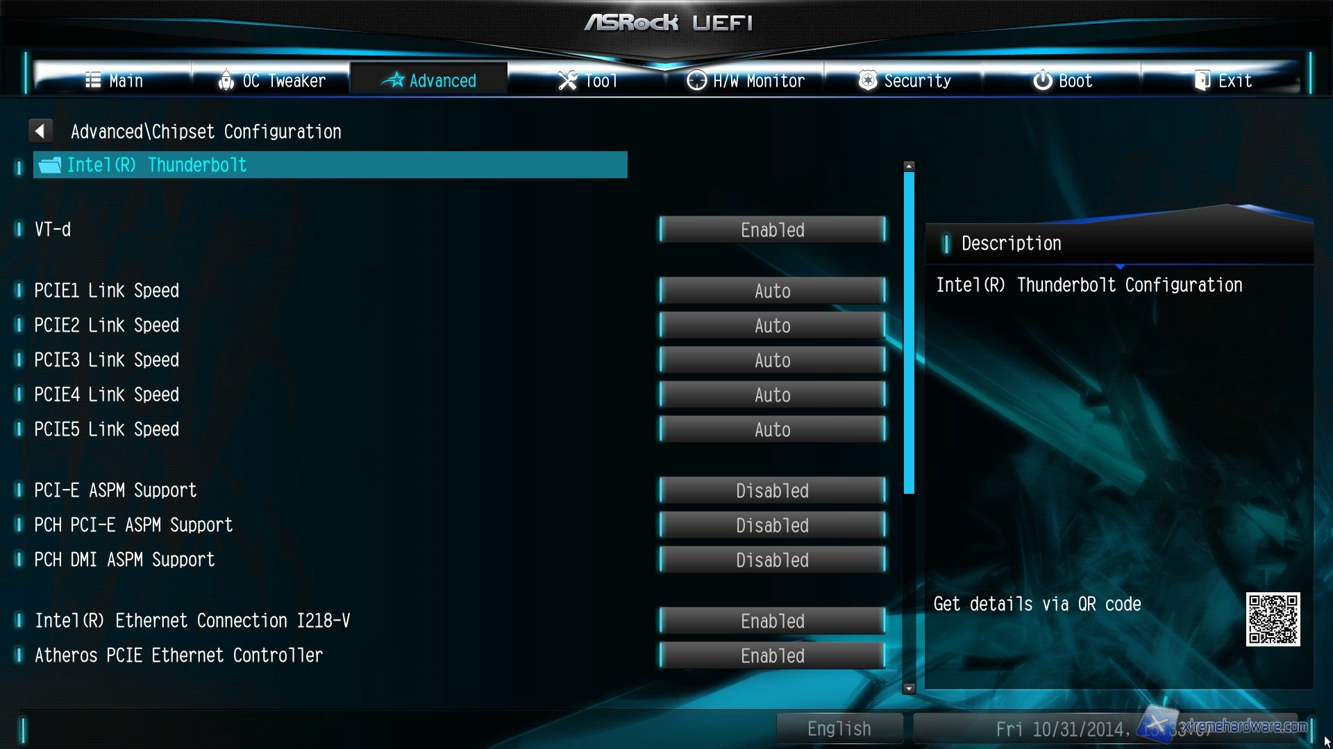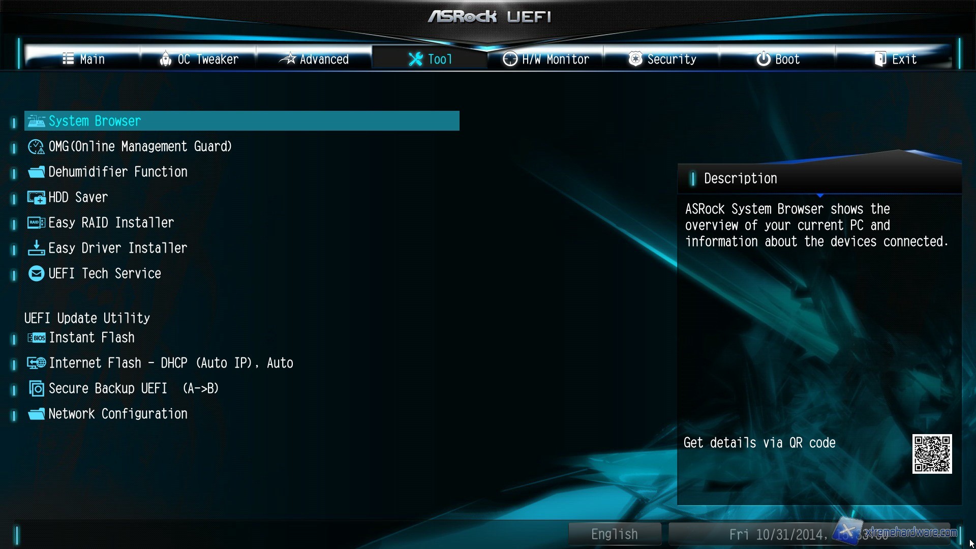Passiamo adesso all’analisi dell’interfaccia dedicata al BIOS. Come sappiamo, dopo l’introduzione dello standard UEFI (Unified Extensible Firmware Interface) rilasciato da Intel nel 2007, tutti i fornitori si sono adoperati per riuscire a personalizzare a proprio piacimento l’ostico (fino a poco tempo fa) ambiente del BIOS. ASRock ha svolto un ottimo lavoro sull’interfaccia grafica del BIOS rendendo comprensibile ogni settaggio grazie alla nota descrittiva che appare sulla destra ed al System Browser che mostra le varie sezioni del layout. Ma è sena dubbio la completezza a livello di settings che permette agli utenti più esigenti di overcloccare con precisione il proprio sistema.
