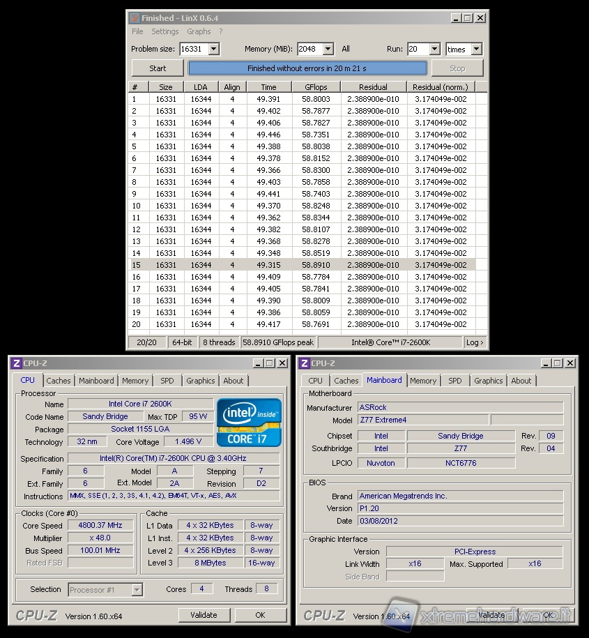 Per i test di overclock abbiamo utilizzato la suite LinX in quanto particolarmente efficiente nel sollecitare il comparto CPU e RAM. Questo è il livello di overclock che siamo riusciti a raggiungere sotto liquido.