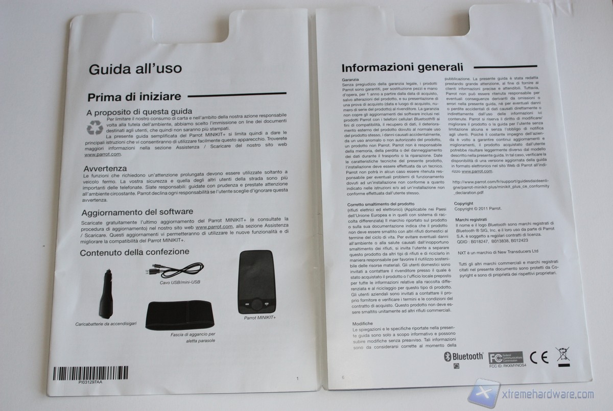 A seguire illustriamo le pagine che compongono la Guida d’uso al Parrot MINIKIT+.La Guida d’Uso è in Italiano e ci illustra nonché riassume in pochi semplici passi le funzionalità principali del Parrot MINIKIT+. La guida risulta essere facilmente consultabile da chiunque senza problemi.