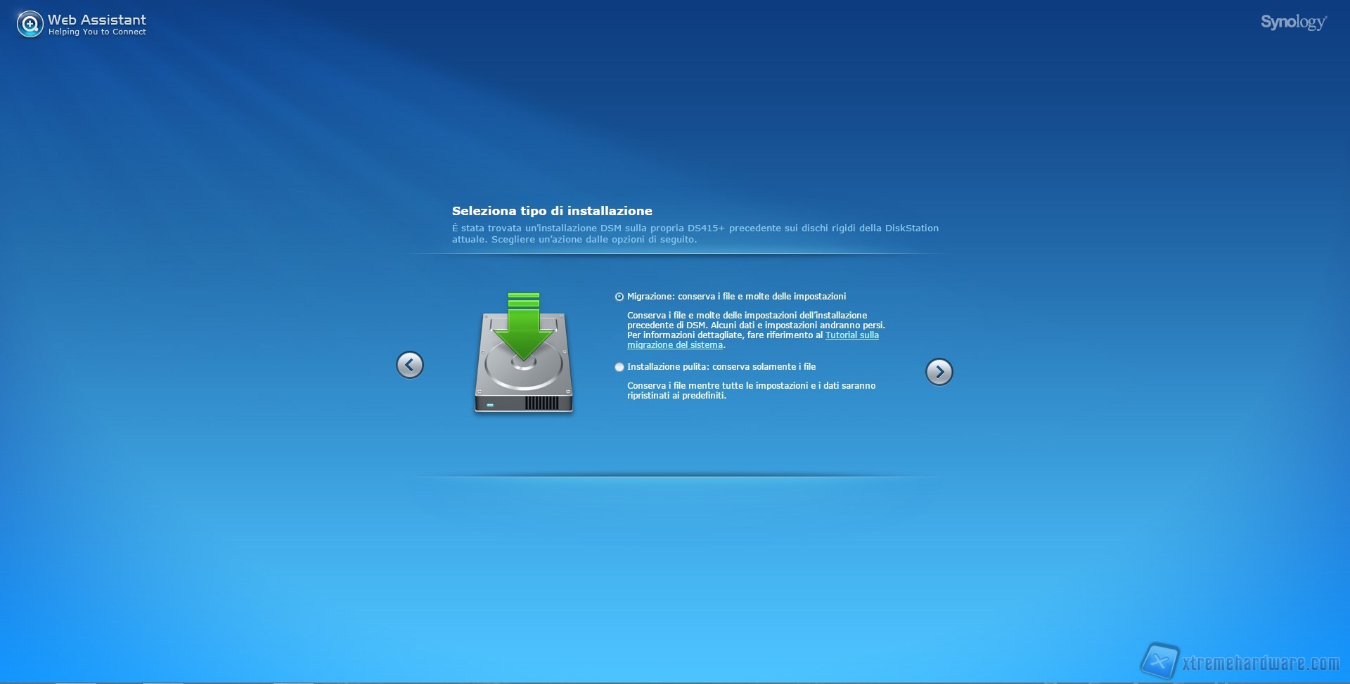 Come potete notare dall'immagine sottostante il software ha riconosciuto all'interno dei nostri dischi una precedente installazione del DSM relativa al DS415play che avevamo recensito mesi addietro e ci chiede se vogliamo migrare il contenuto nella nuova soluzione DS415+.