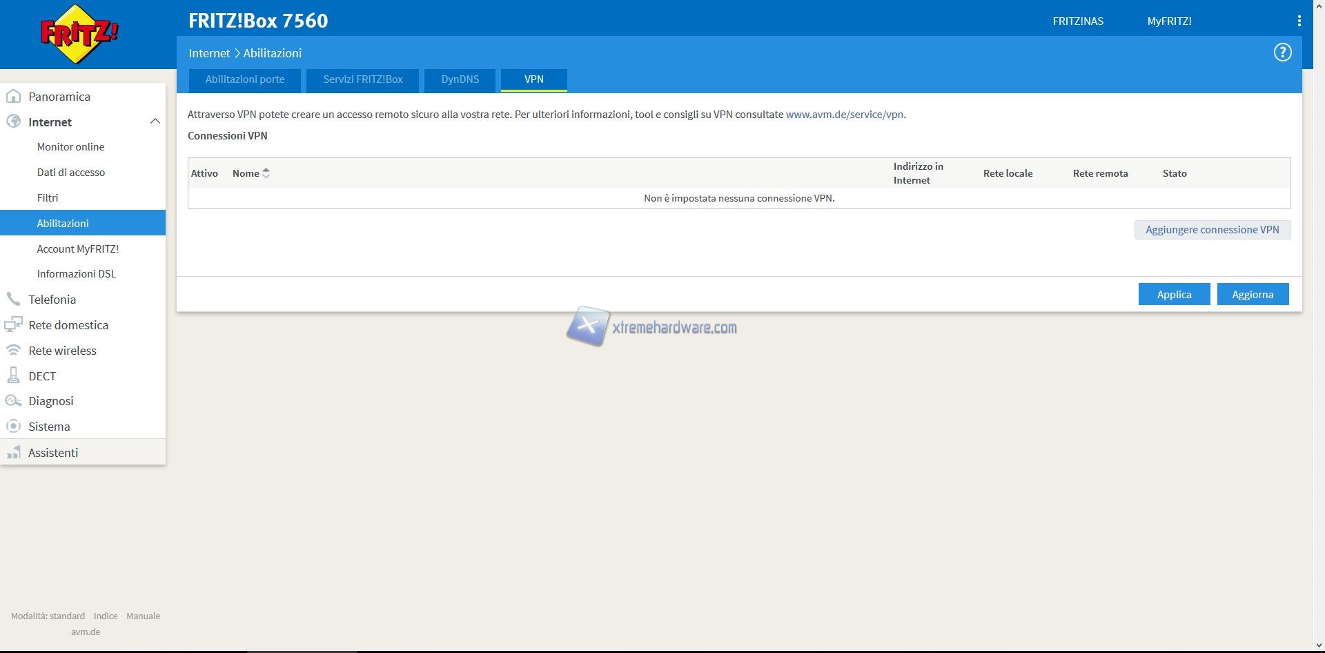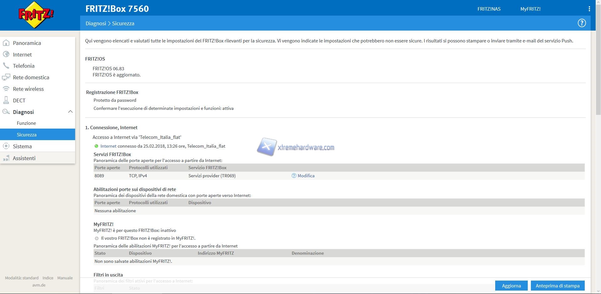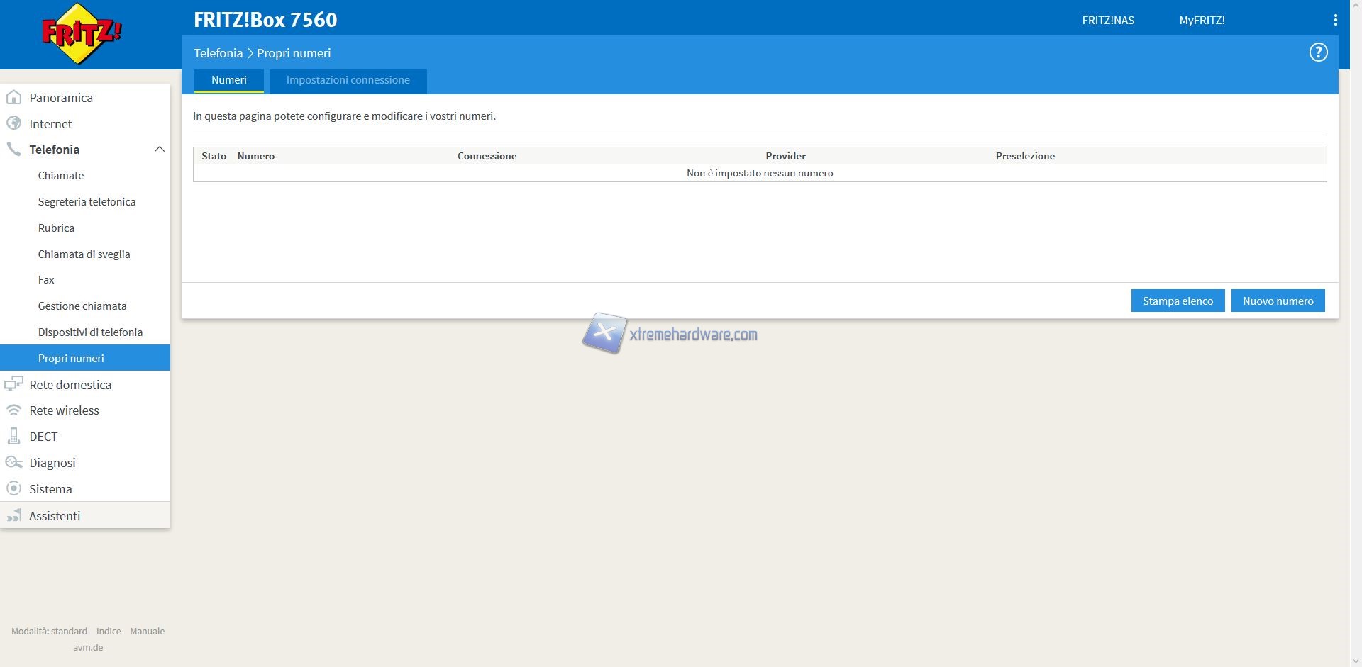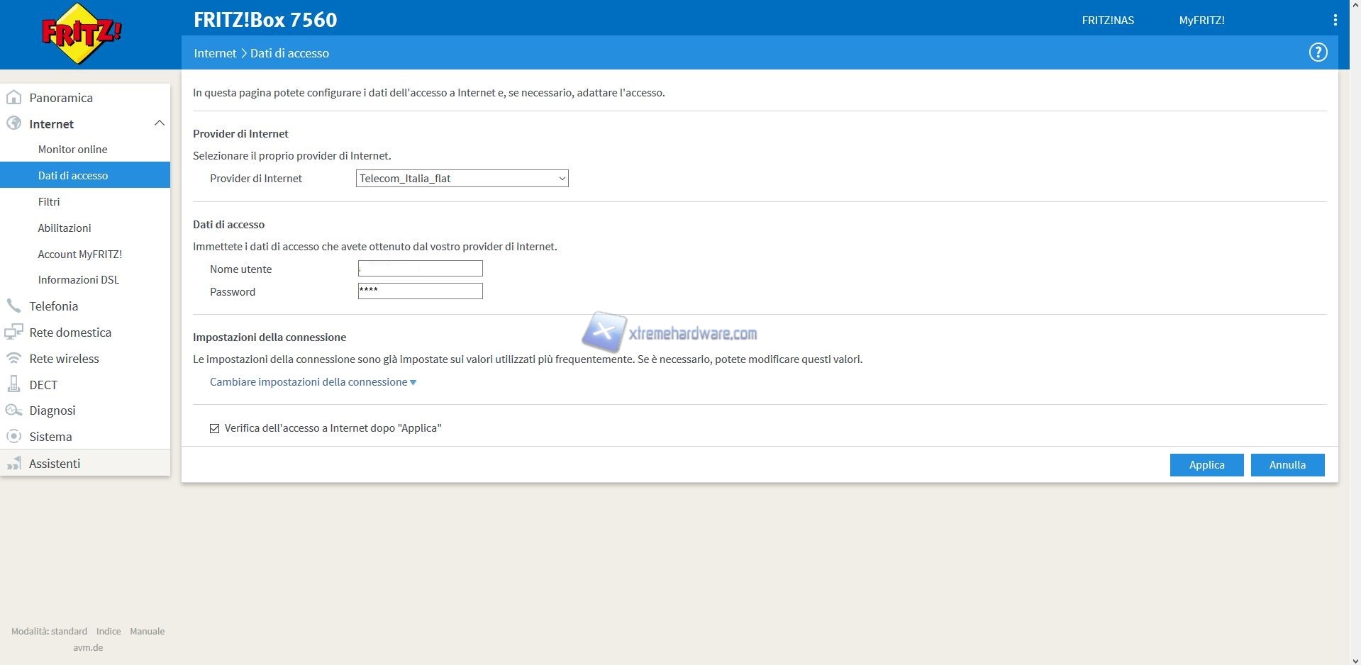 Oltre a questo Menù troveremo altri quali ‘’Internet’’, ‘’Telefonia’’, ‘’Rete Domestica’’, ‘’Rete Wireless’’, ‘’DECT’’, ‘’Diagnosi’’, ‘’Sistema’’ e ‘’Assistenti’’.