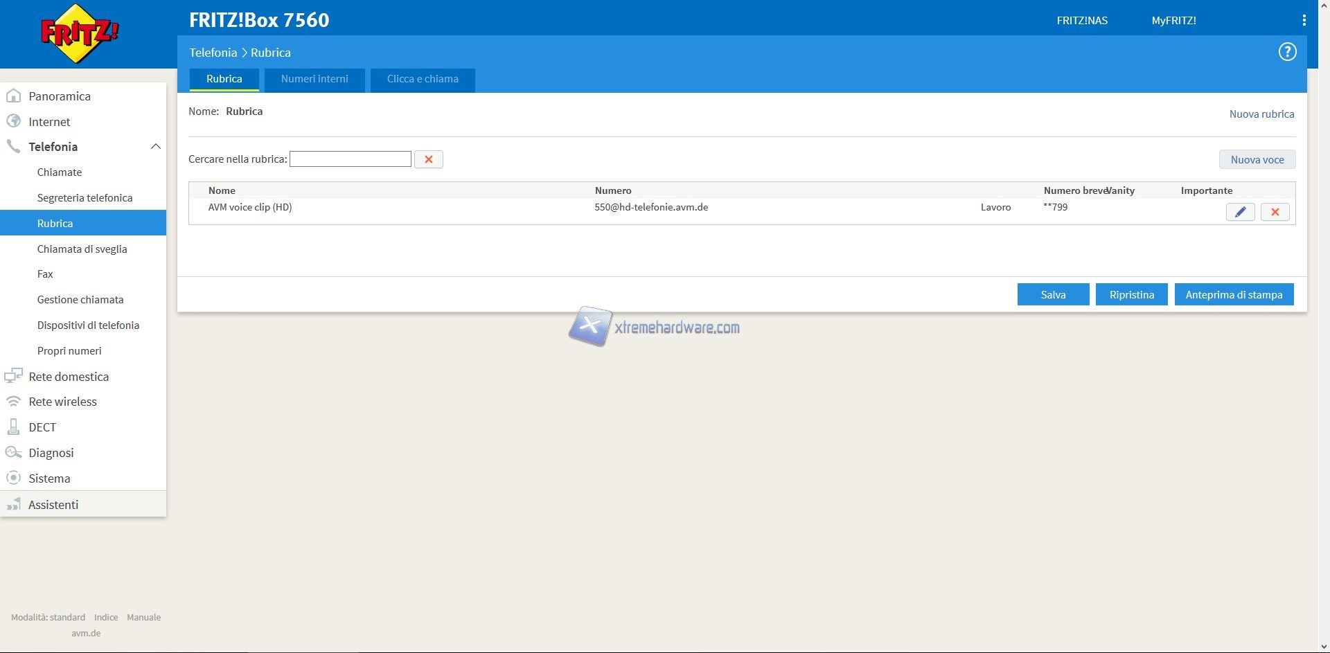 Passando al Menù ‘’Telefonia’’ potremo gestire la base DECT integrata nel dispositivo oltre ad eventuali Cordless collegati (fino a 6), numeri, segreteria e tutto quello che ci potrà permettere di sfruttare Internet per chiamare o ricevere chiamate. Da sempre AVM è alla costante ricerca del perfezionamento a 360 gradi, a livello di funzioni e caratteristiche, dei propri prodotti in ambito casalingo e non. Potrete vedere meglio tutte le funzioni dalle immagini a seguire.
