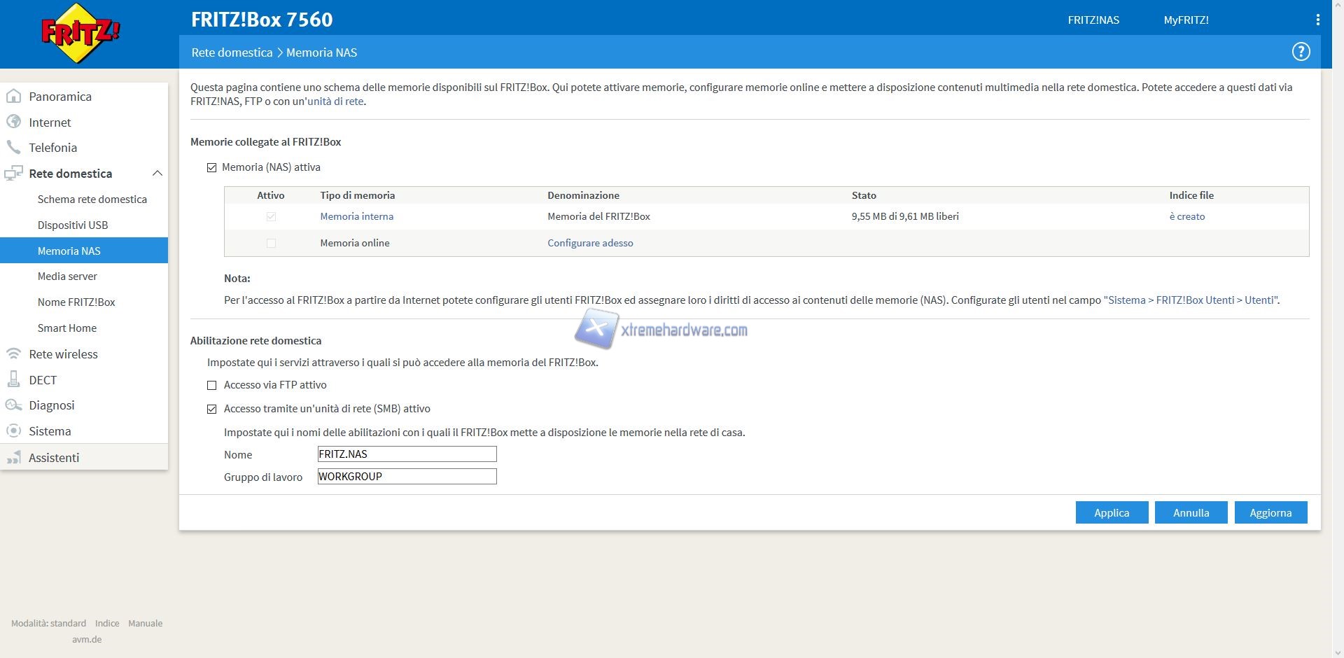 Prima di procedere con i diversi Menù vogliamo ricordare come AVM con la serie FRITZ!Box metta a disposizione anche ‘’FRITZ!NAS’’ interessante funzione per coloro che vogliono creare un piccolo NAS senza acquistare un Hardware dedicato. Ci basterà solo avere a disposizione un Hard Disk Esterno da collegare al dispositivo. Con una rapida impostazione di alcuni parametri saremo pronti a condividere all’interno della nostra rete file multimediali e non.