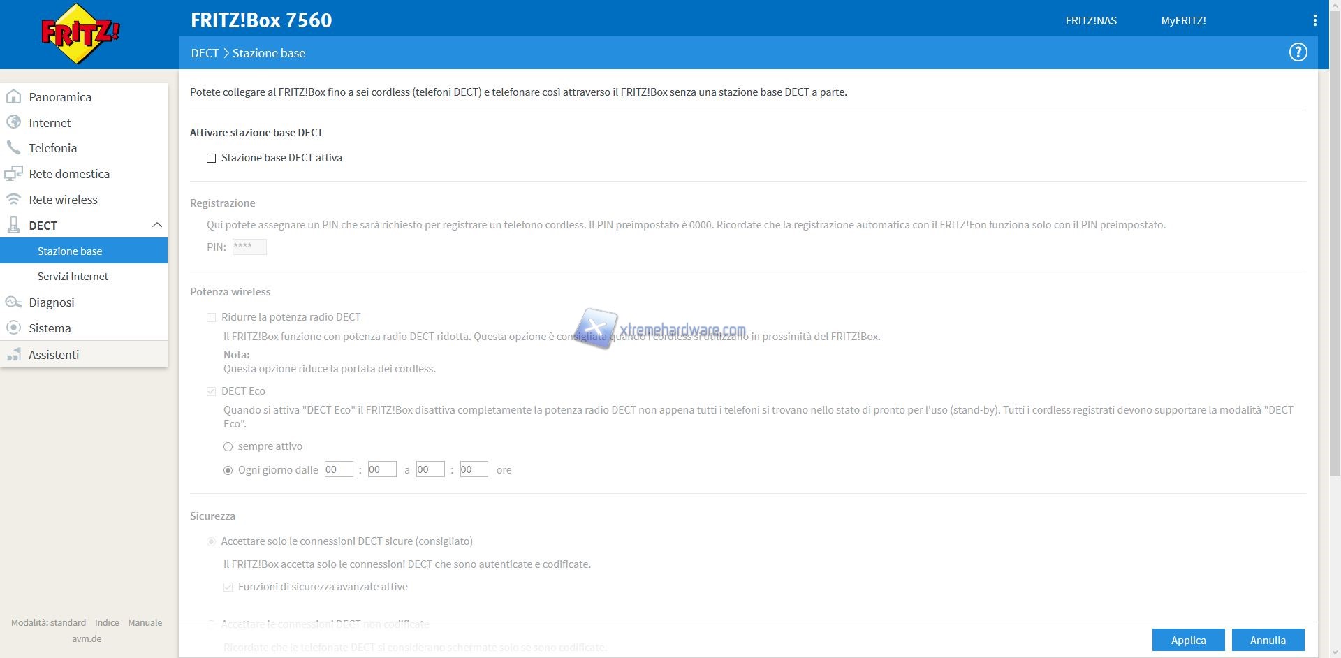‘’DECT’’ ci permetterà semplicemente di abilitare o meno la il FRITZ!Box 7560 come base DECT o meno.